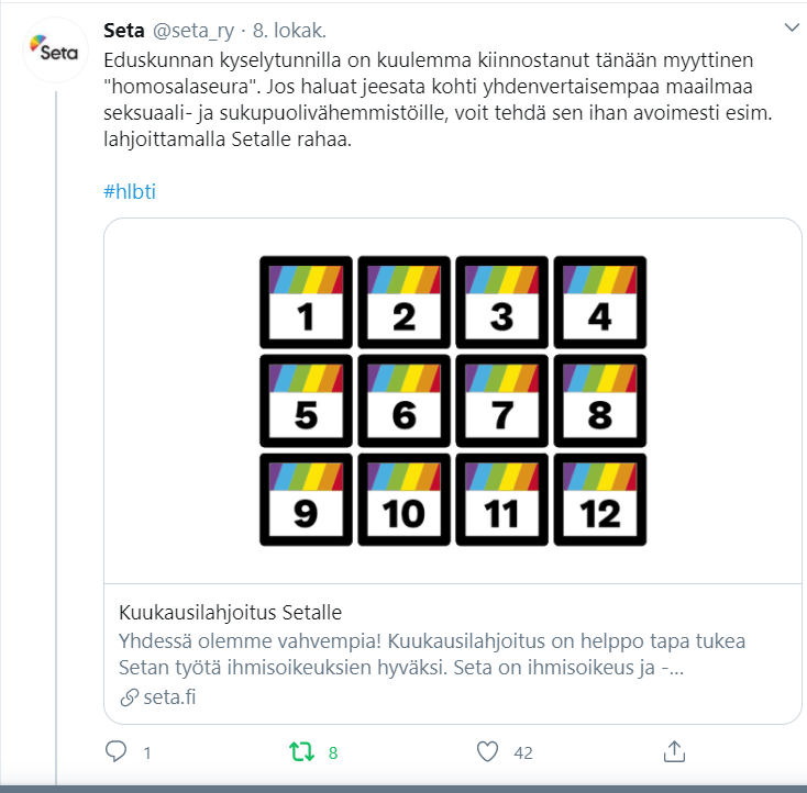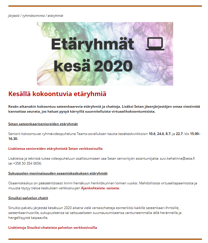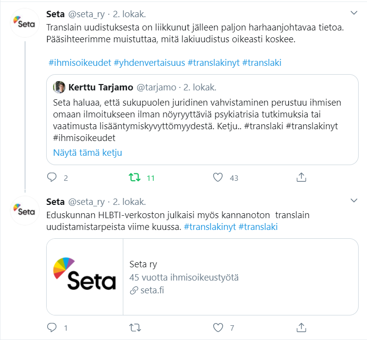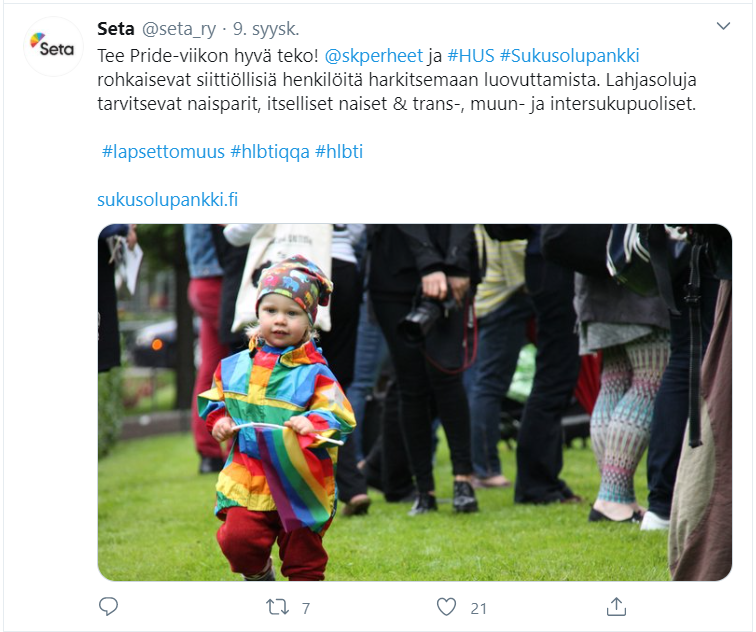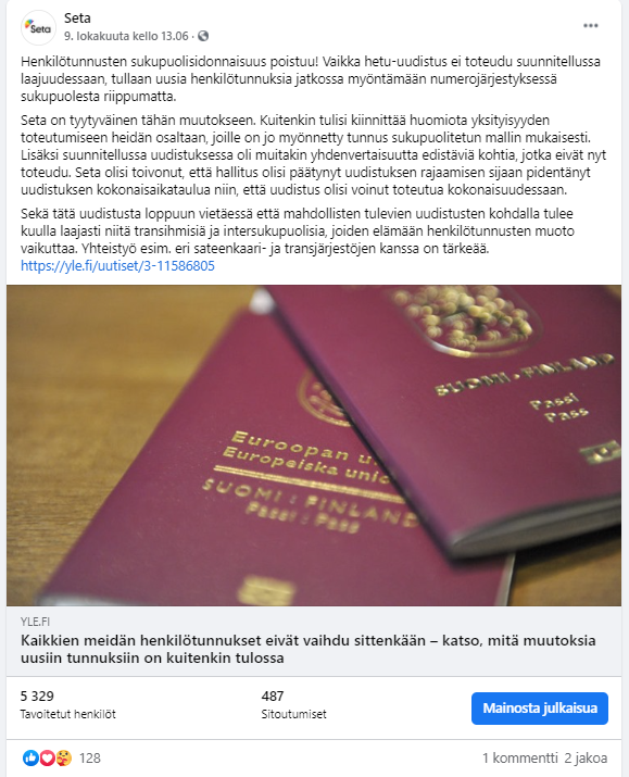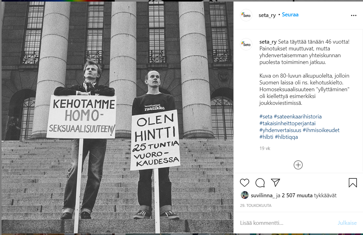 Esimerkkejä Setalle tekemistäni somejulkaisuista, kanavina Facebook, Instagram ja Twitter. Joukossa on myös pari uutiskirjeartikkelia.